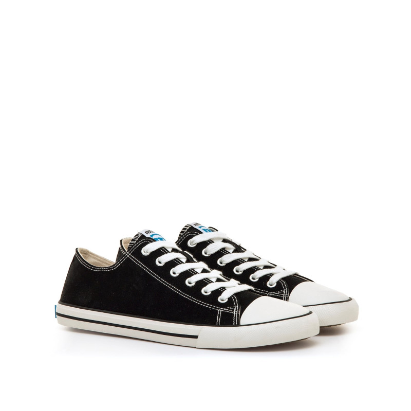Zapatillas barefoot tipo lona de color negro para hombre, modelo Free Emi de la marca Mtng. Su diseño liso con costuras en contraste y puntera blanca ofrece un look atemporal fácil de combinar. Diseñadas y desarrolladas especialmente en colaboración