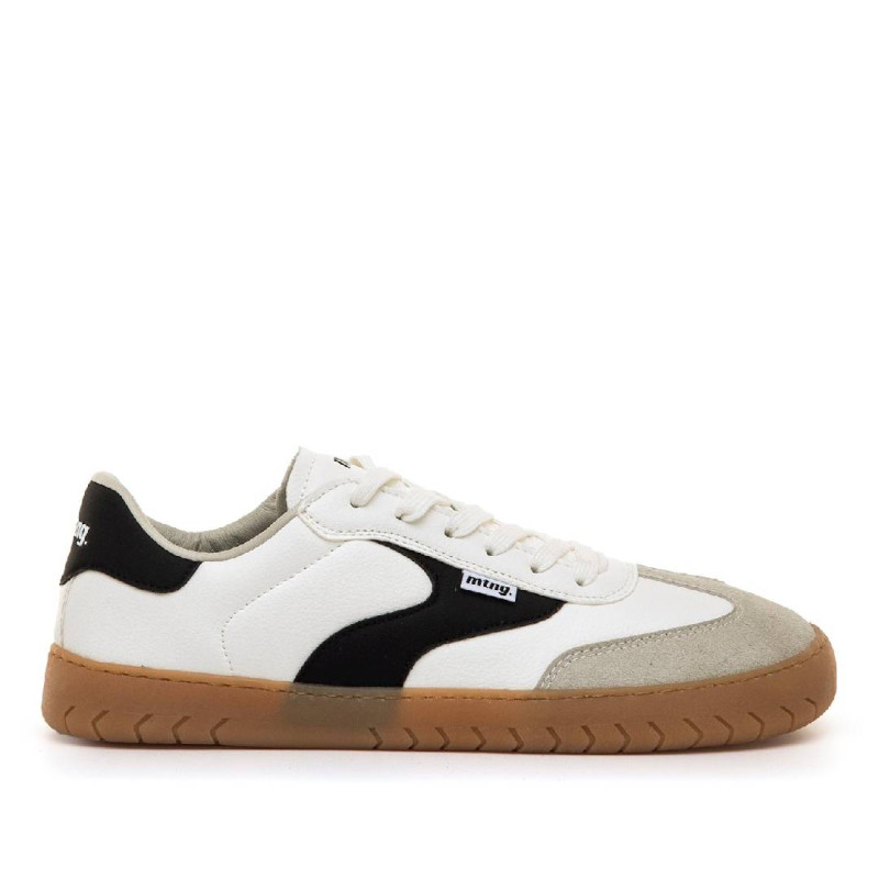 Zapatillas barefoot de color blanco para hombre de la marca mtng, modelo Free Jym. Combina una base clara con refuerzos en gris claro en la puntera y detalles en negro en el talón y lateral, aportando un contraste sutil. Incorpora una suela de color