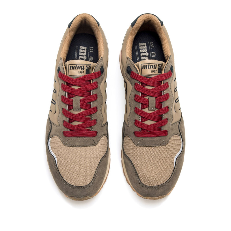 Zapatillas de color arena para hombre, modelo Joggo Classic Mtng, de estilo retro running con diseño multicolor y detalles que realzan su estética deportiva. Incorpora cordones de color burdeos, refuerzos en contraste y el logo lateral bordado que ap