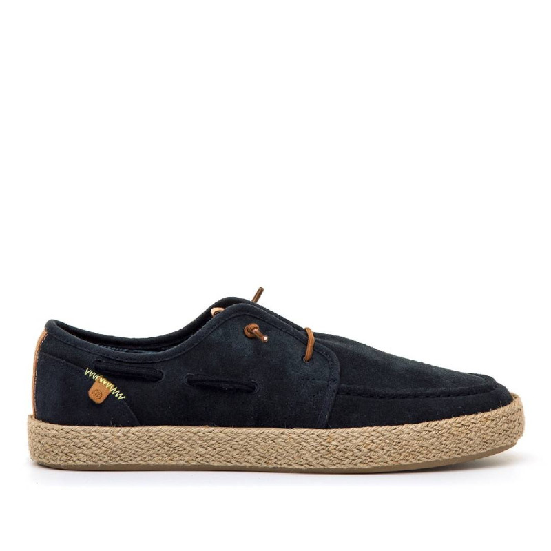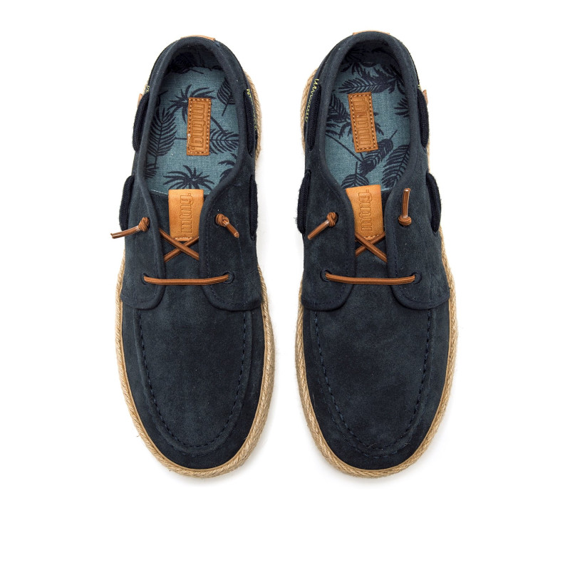 Zapato casual de color azul marino para hombre, modelo Napoli de mtng. Este diseño de piel con acabado suave incorpora cordones finos tono cuero y un característico cordón alrededor del zapato que refuerza su inspiración náutica. La suela con detalle