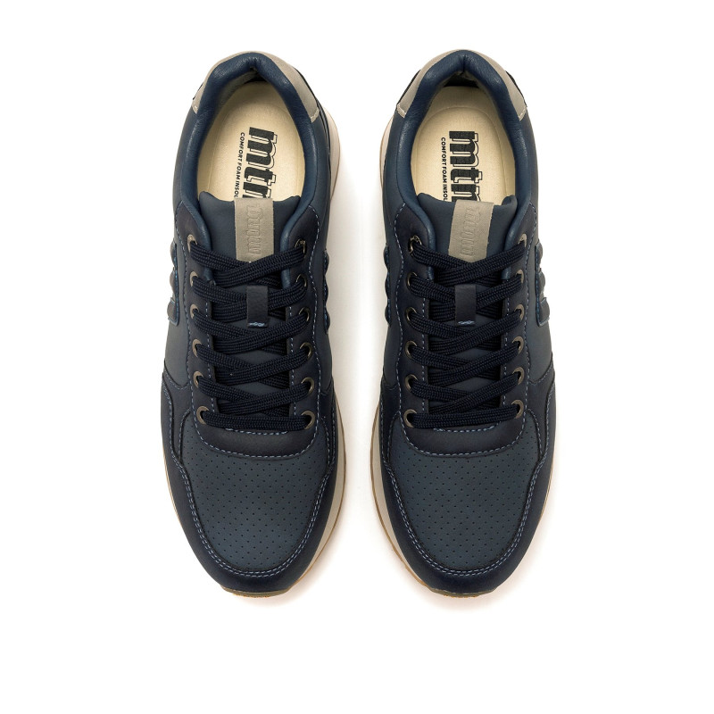 Zapatillas de color azul marino para hombre de la marca Mtng, modelo Porland, con diseño deportivo y estilo casual. Su acabado perforado en la parte frontal mejora la transpirabilidad, mientras que el detalle del logo en relieve lateral y el talón en