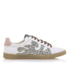Zapatillas blancas Bowie de mujer de la marca Mustang. Destacan por su diseño con detalles en glitter plateado que añaden un toque atrevido. Los cordones en tonos metálicos y el talón en color rosa claro hacen de estas zapatillas una opción moderna y diferente para cualquier ocasión. Eleva tu look casual con Bowie de Mustang.