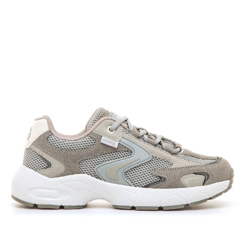Zapatillas de color gris con detalles en blanco para mujer, modelo Electra de Mtng de estilo casual deportivo. Su diseño combina paneles de malla con piezas superpuestas en diferentes tonos que le aportan personalidad y versatilidad. Incorpora suela