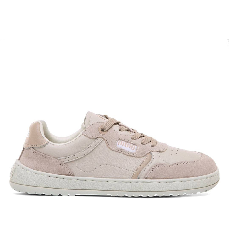 Zapatillas barefoot de color rosa claro para mujer de la marca Mtng, modelo Free Alask con diseño casual. Fabricada en piel, combina paneles lisos y piezas en serraje que aportan textura y un acabado suave. Su estructura baja con cordones ofrece un a