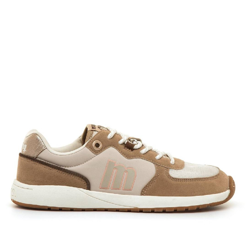 Zapatillas de color beige para mujer, modelo Free Apolo de la marca Mtng con diseño deportivo. Este modelo combina diferentes texturas en el corte y colores en contraste como el beige, marrón y el talón metalizado. Diseñadas y desarrolladas especialm