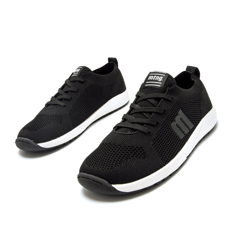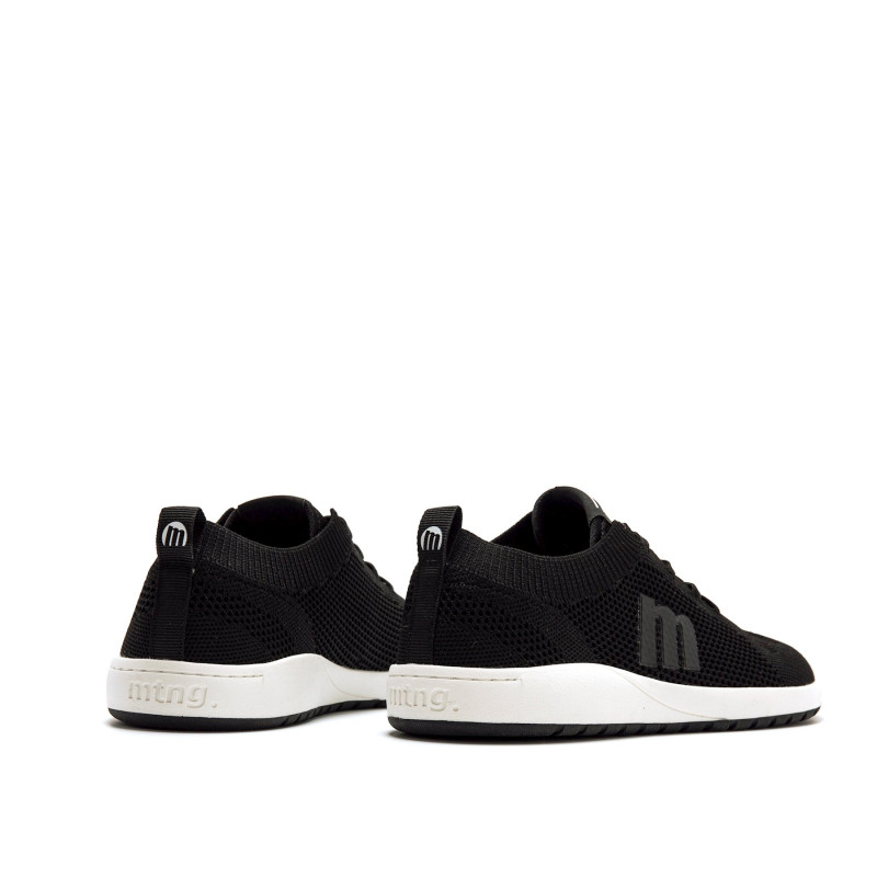 Zapatillas barefoot de color negro para mujer de la marca Mtng, modelo Free Apolo de estilo deportivo. Este diseño destaca por su upper de malla y su suela blanca en contraste. Incluye tiradores traseros para facilitar el calce y un logo lateral en r