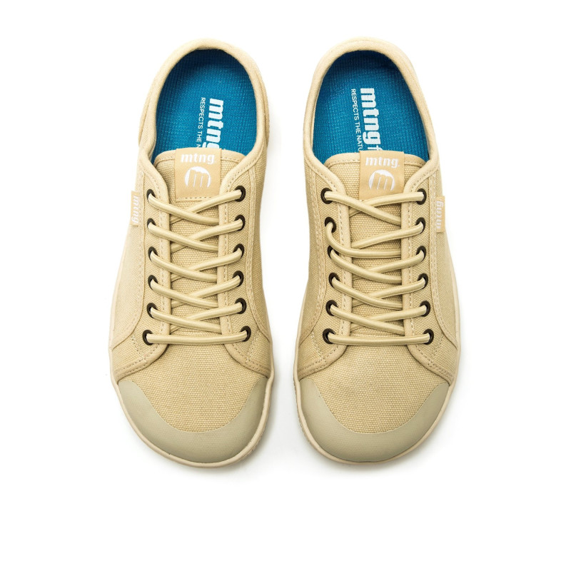 Zapatillas barefoot de color vainilla para mujer, modelo Free Aria de la marca mtng. El tono suave es ideal para quienes buscan un look fresco y actual. Su diseño en lona con puntera beige aporta un acabado natural. Diseñadas y desarrolladas especial