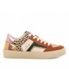 Zapatillas multicolor de mujer, modelo Lauper de mtng. Este diseño combina tonos cálidos como champagne, naranja y beige con detalles en animal print y acentos metalizados que aportan un toque original. Los paneles laterales verde y con glitter dorad