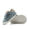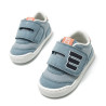 Zapatillas Free Baby azul claro par bebés, de Mtng. Con un cierre adherente que cuenta con la M del logo de color azul marino en él y detalles naranjas. Tan cómodos que no se los querrán quitar. Nuestro calzado FREE, diseñado y desarrollado especialm