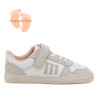 Zapatillas de color blanco con detalles en beige y rosa para niña de la marca Mtng, modelo Free. Diseñadas para ofrecer comodidad y estilo con su cierre combinado adhesivo y cordones elásticos, estas zapatillas destacan por su ajuste práctico y su di
