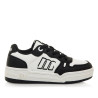 Zapatillas de color negro y blanco para niño, modelo Nana de MTNG. Inspirada en la estética del basket clásico, la zapatilla Nana ofrece un look actual y versátil. Su diseño combina paneles en contraste con el logo bordado lateral y cordones negros a