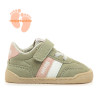 Zapatillas barefoot de color verde claro para niña, modelo Free Baby de MTNG estilo deportivo con detalles en rosa y blanco. Incorporan cordones elásticos y cierre adherente para un ajuste sencillo y cómodo. Diseñada y desarrollada especialmente en c