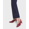 Zapatos destalonados FLEXFIT 23 confeccionados en piel lisa color rojo, decorado con tachuelas metálicas en distintas dimensiones. El escote en V estiliza el empeine, mientras que el tirador trasero con elástico garantiza una sujeción cómoda y segura. El