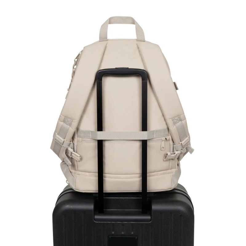 La mochila Eastpak Everyday Pak’r Monotone Beige combina un diseño minimalista con una funcionalidad pensada para el día a día, convirtiéndose en la compañera ideal para el trabajo, los estudios o los desplazamientos urbanos. Su acabado en color caqui liso aporta una estética elegante, discreta y fácil de combinar con cualquier estilo. Cuenta con una funda acolchada para portátil de hasta 16 pulgadas, que protege tus dispositivos electrónicos durante el transporte, además de un bolsillo organizador interior que facilita mantener tus objetos personales bien ordenados. El portabotellas lateral permite acceder cómodamente a tu bebida en cualquier momento, mientras que la correa trasera para equipaje la hace perfecta para viajes y trayectos largos. Fabricada en 100 % poliamida con acabado hidrófugo e impermeable, esta mochila ayuda a proteger tus pertenencias frente a la lluvia y la humedad. Con un peso de 940 g, ofrece una excelente capacidad sin renunciar a la comodidad. Una mochila mediana, práctica y resistente, diseñada para acompañarte en tu rutina diaria con el sello de calidad Eastpak.