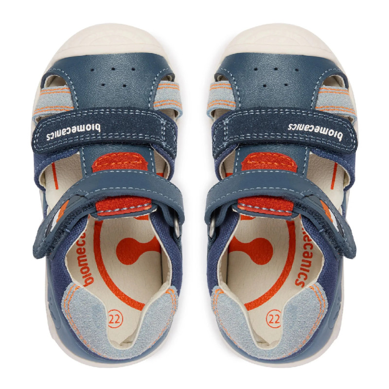 Las sandalias para niño Biomecanics modelo 262123 en color azul están diseñadas para ofrecer comodidad, sujeción y resistencia en el día a día. Incorporan detalle de tira de lona que aporta un toque deportivo y moderno. Cuentan con doble cierre con velcro, facilitando un ajuste rápido, seguro y personalizado. Su contrafuerte y puntera reforzados protegen el pie y aportan estabilidad, ideales para acompañar a los más pequeños en sus actividades diarias. Fabricadas en piel de alta calidad, garantizan durabilidad y confort, mientras que su suela blanca proporciona una pisada ligera y estable. Perfectas para uso diario, juegos y paseos.