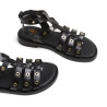 SANDALIA ROMANA PLANA PIEL CON TACHUELAS NEGRO MIA PORRONET