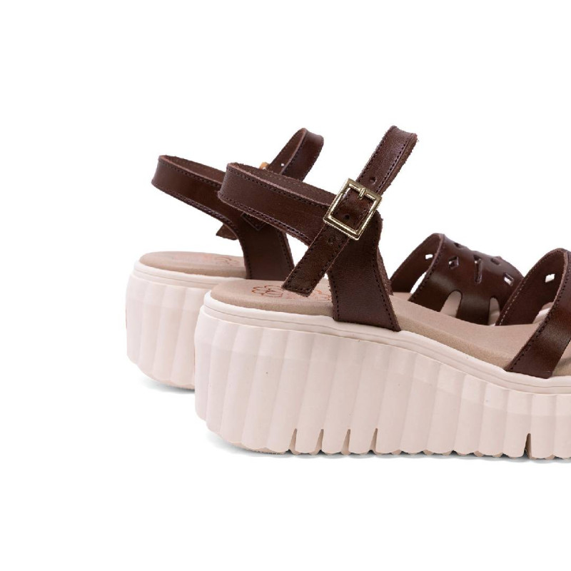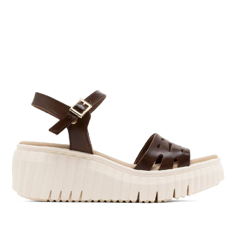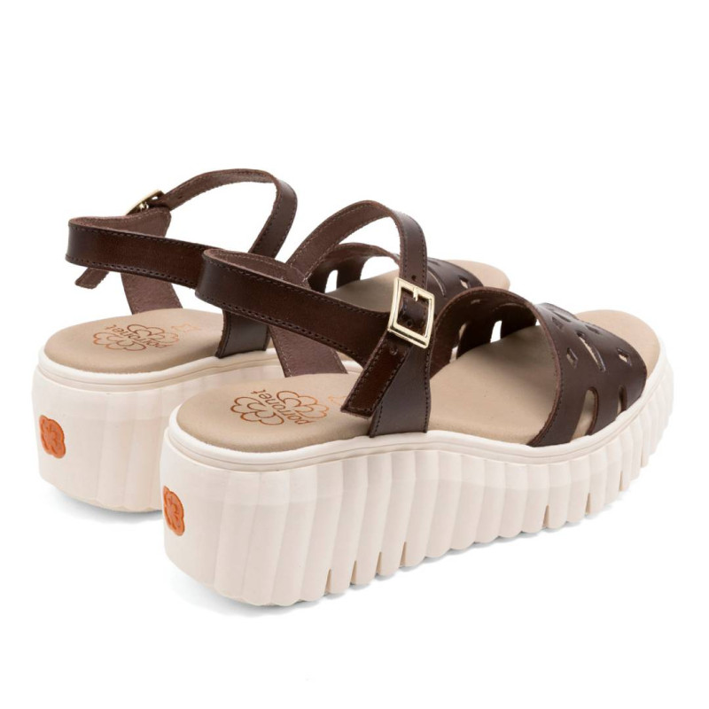 Sandalias cuña Porronet elsa moka con pala troquelada de piel