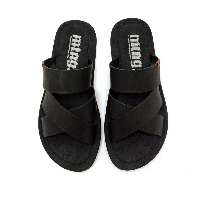 Sandalias planas de color negro para hombre, modelo Hawaii de Mtng, con diseño de tiras anchas cruzadas que aportan una buena sujeción. La plantilla acolchada con tecnología Comfort favorece una pisada más confortable, mientras que su formato abierto