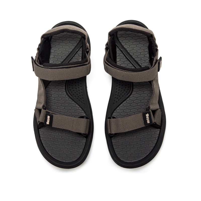 Sandalias de color gris para hombre de la marca Mtng, modelo Solana, de estilo deportivo funcional. Diseñadas con tiras ajustables adhesivas en el tobillo y en la parte delantera, permiten un calce cómodo y personalizado. La suela en tono negro con r