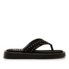 Sandalia de dedo con plataforma de color marrón moka, modelo Maby de mtng para mujer. Su diseño con suela elevada destaca por la tira ancha decorada con pequeñas tachas doradas que aportan un toque actual. La forma en V favorece la sujeción del pie y