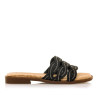 Sandalias planas color marrón Rubie, para mujer, de la marca Mtng. Este modelo destaca por sus tiras trenzadas de rafia en un elegante tono marrón, que le dan un toque boho que contrasta con los cristales marrones de sus tiras. La suela plana y la pl