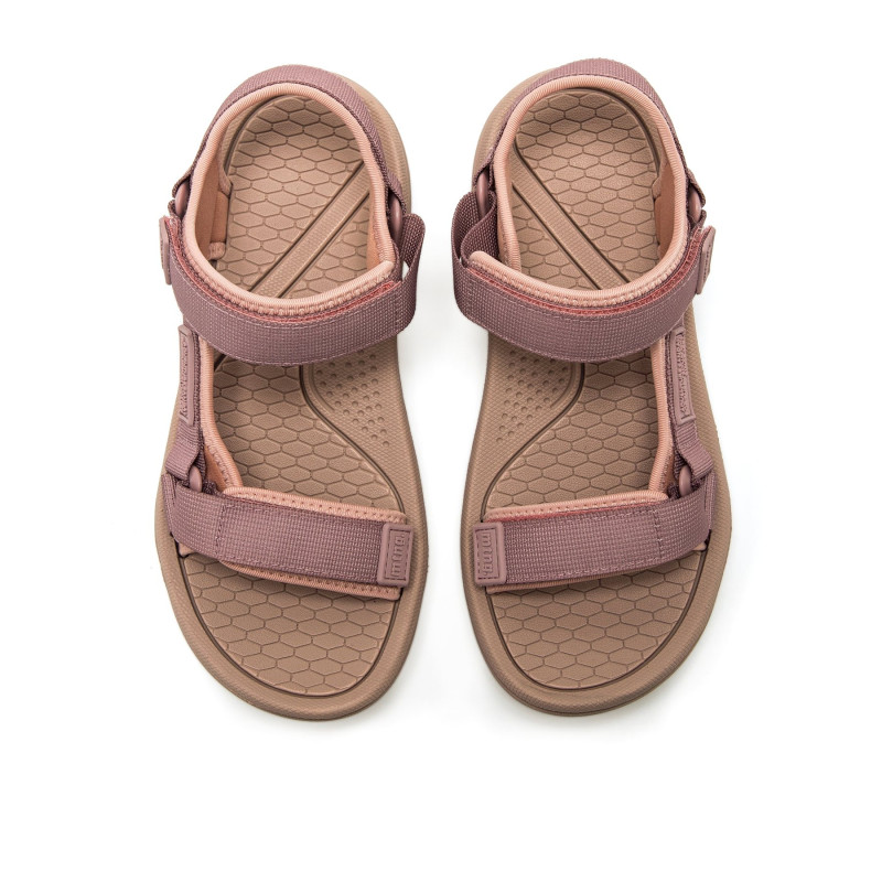 Sandalia de estilo outdoor de color malva y rosa para mujer, modelo Solana de la marca mtng, pensada para acompañar planes activos durante los días de calor. Incorpora varias tiras con cierres adhesivos al empeine y tobillo que permiten ajustar el ca