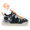 Sandalias barefoot de color azul marino con detalles en gris y naranja para bebés de la marca Mtng, modelo Free Baby. Este calzado es ideal para los pequeños que comienzan a explorar el mundo, gracias a su diseño abierto estilo cangrejera que favorec