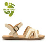 Sandalias barefoot de color beige para niña, modelo Free de la marca Mtng, de estilo artesanal con diseño entrelazado en la pala. Este modelo destaca por su estructura ligera con cierre de hebilla ajustable al tobillo. Diseñadas y desarrolladas espe