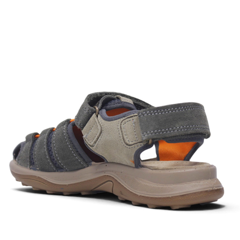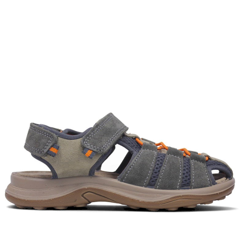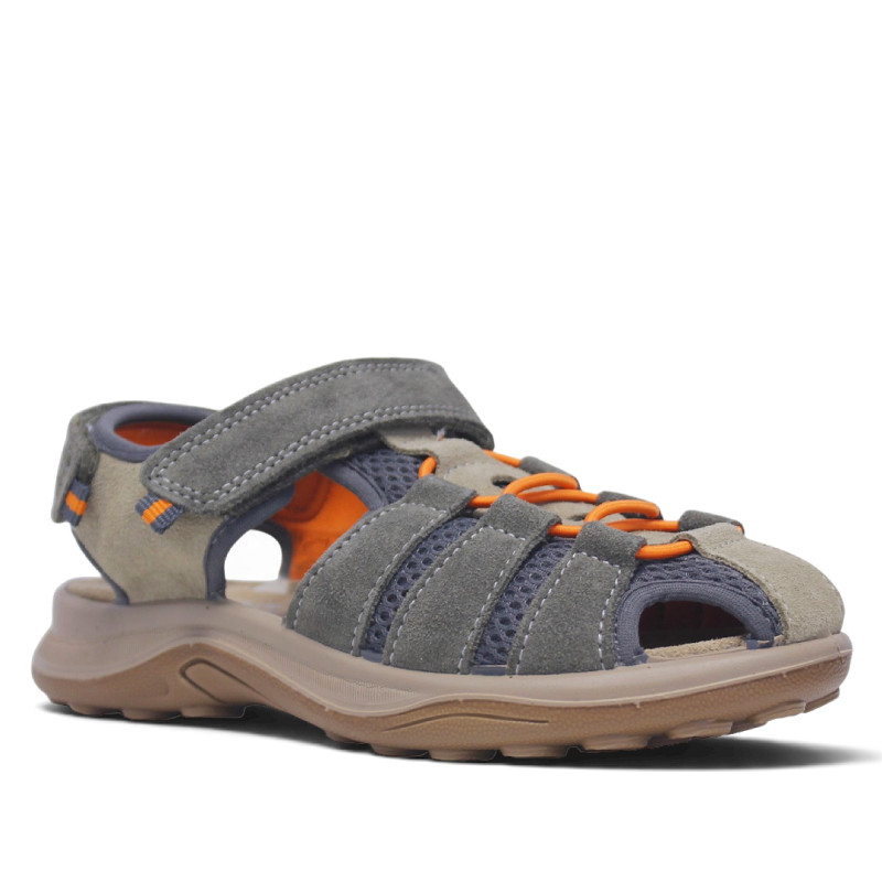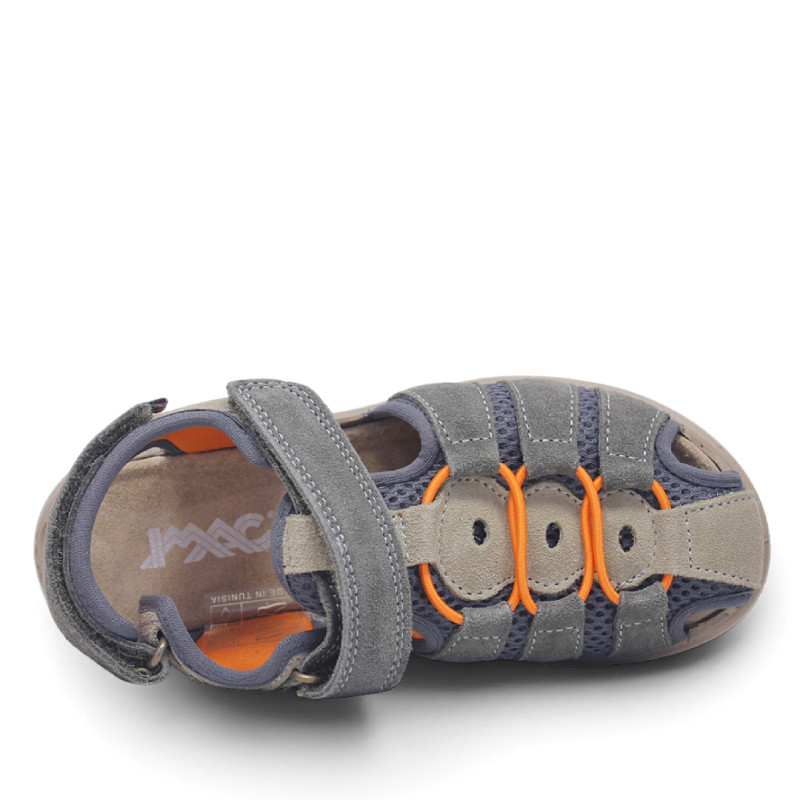 sandalias Imac grises con detalles naranjas estilo cangrejera de ante