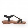 Sandalias planas Amarpies con tira negra horizontal doble y detalle en madera