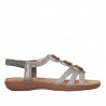 Sandalias planas Amarpies metalizada con tres piedras redondas