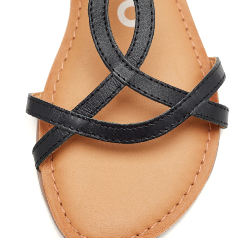 Sandalias planas Gioseppo negras con tiras finas de piel lamim