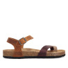 Sandalias planas para mujer de la selección Querol, elaboradas en piel de alta calidad y en color marrón, perfectas para el verano. Presentan una tira cruzada en el dedo que aporta un toque moderno y elegante, combinada con cierre de hebilla para un ajuste cómodo y seguro. La plantilla tipo bio se adapta a la forma natural del pie, ofreciendo máxima comodidad durante todo el día. Un modelo versátil para combinar con cualquier look casual o urbano.