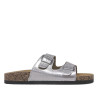 Sandalias planas plateadas con dos hebillas ajustables y suela de corcho