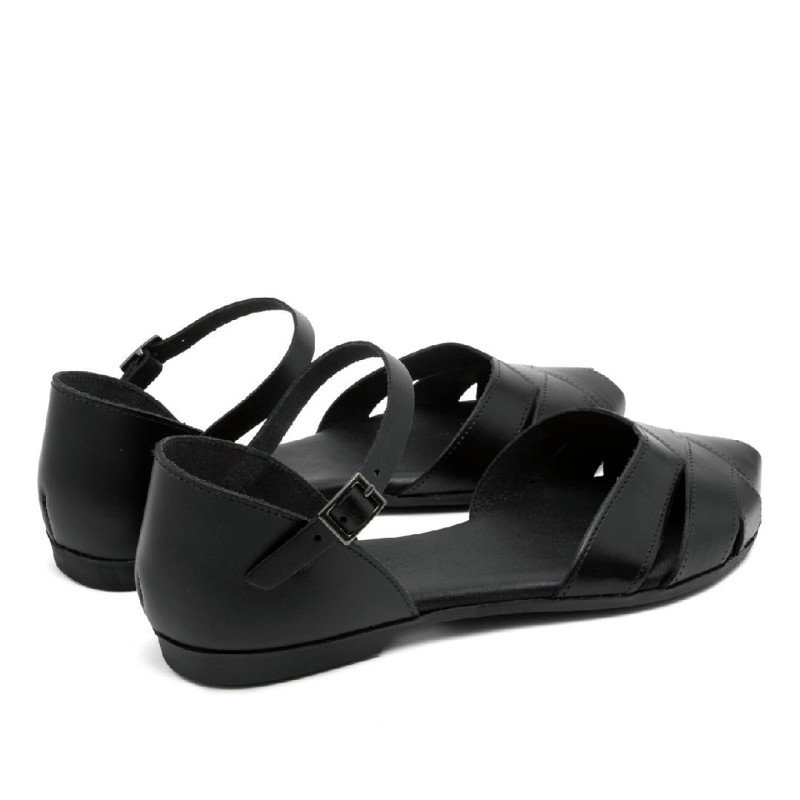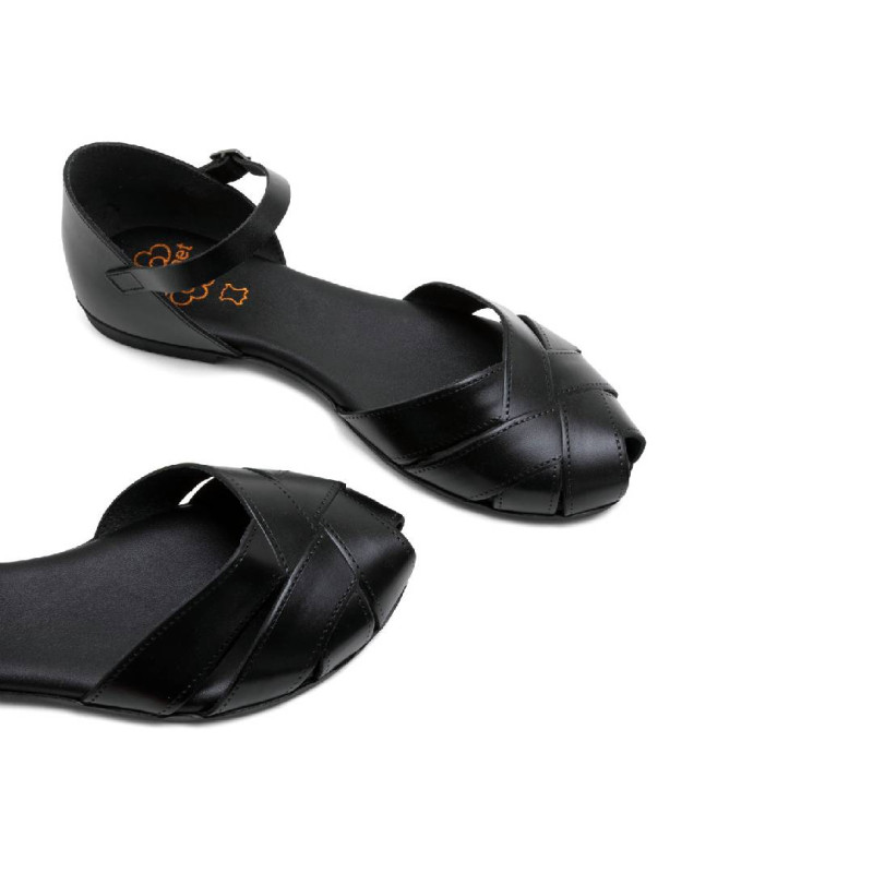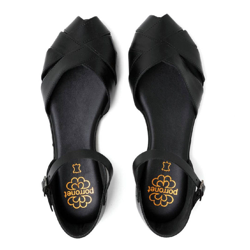 Sandalias planas Porronet alba negras con la pala y el talón cerrados de piel