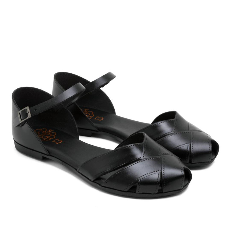 La Porronet Alba en color negro es una sandalia plana de piel con pala y talón cerrado, diseñada para combinar estilo y comodidad. Cuenta con cierre mediante pulsera de piel ajustable al tobillo con hebilla, lo que permite un ajuste seguro y personalizado. Su plantilla acolchada de piel garantiza confort en cada paso, mientras que la suela antideslizante ofrece mayor estabilidad. Este modelo está fabricado artesanalmente en España, destacando por su calidad y acabado cuidado.
