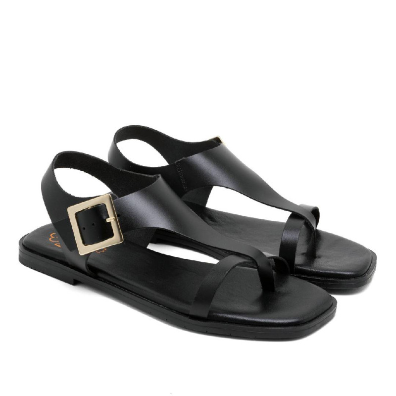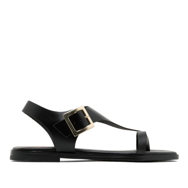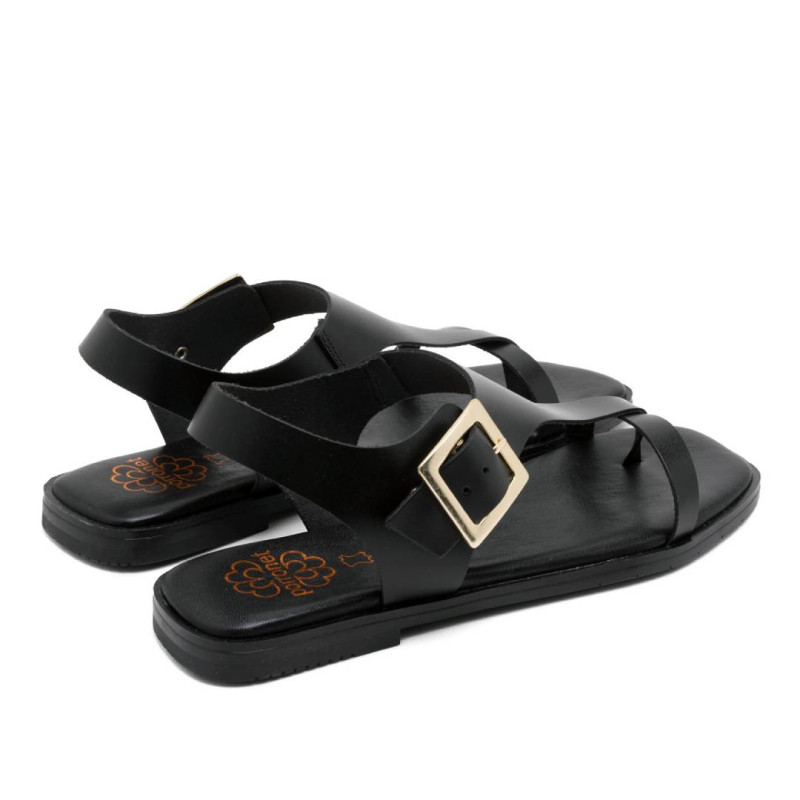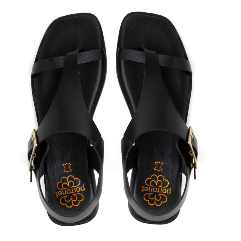 Sandalias planas Porronet berta negras con tira cruzando el empeine de piel