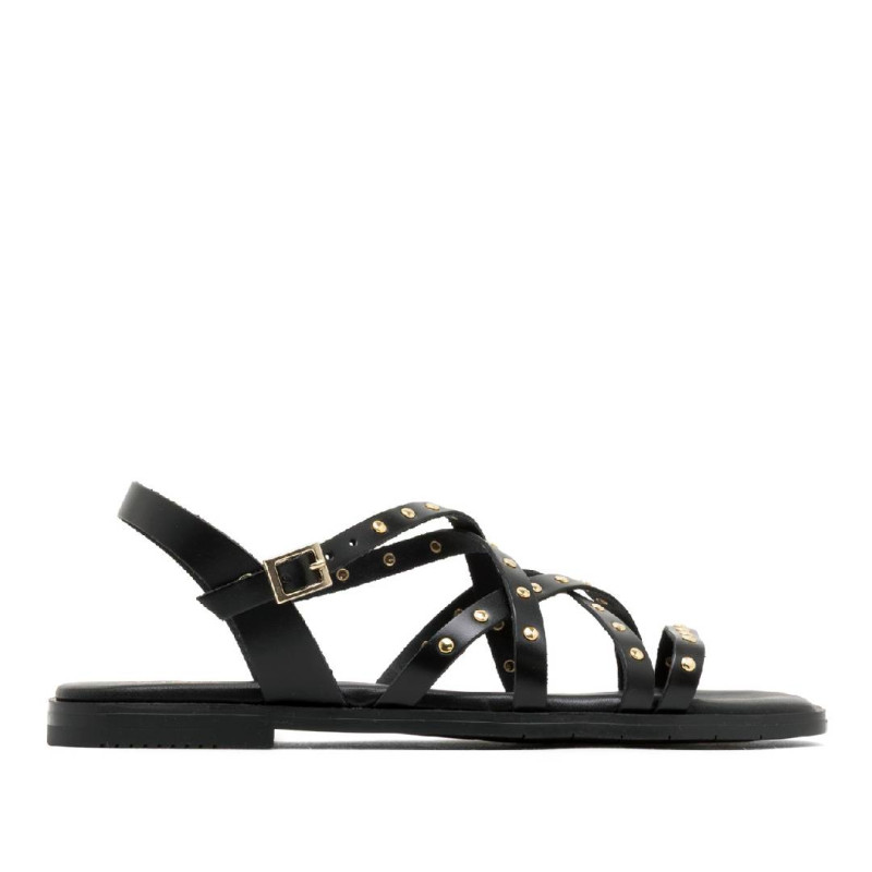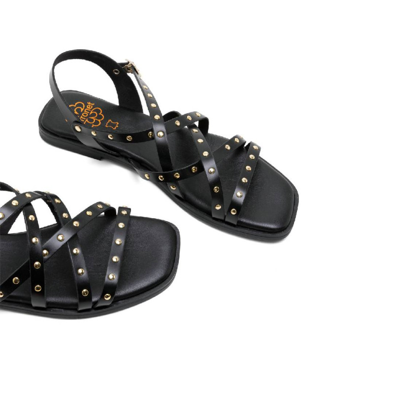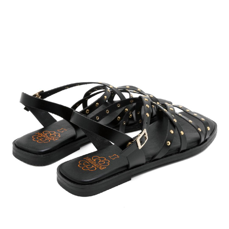 Sandalias planas Porronet blair negras con tiras cruzadas con tachuelas de piel