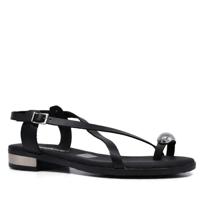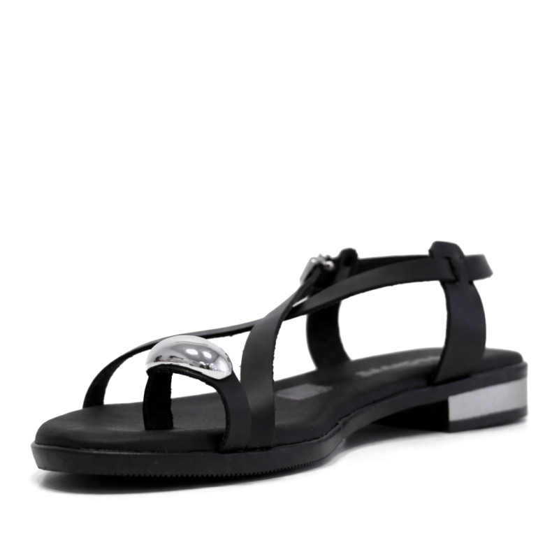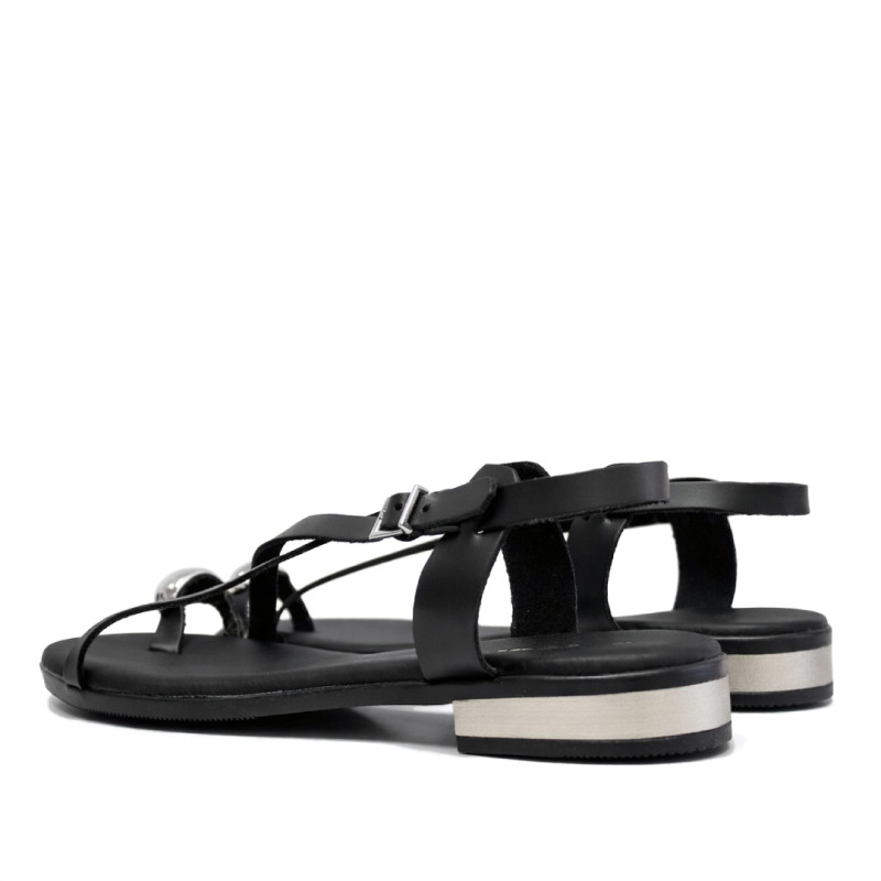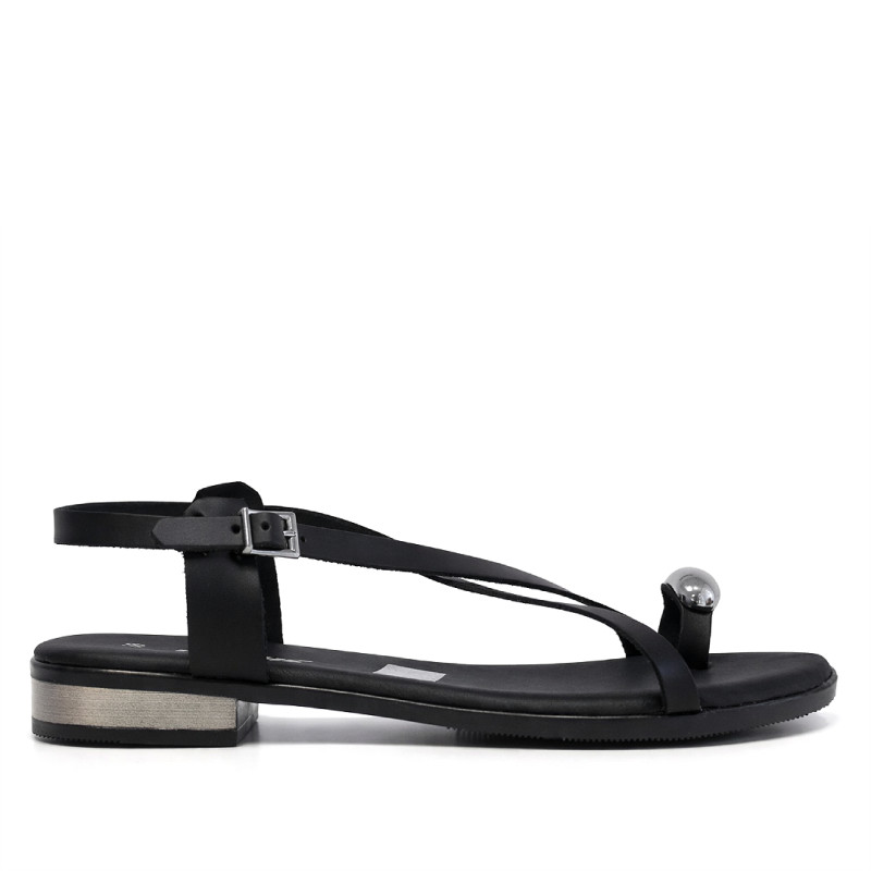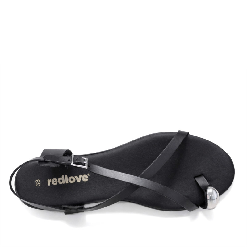 Sandalias planas Redlove aiko negras con anillo metálico en el dedo