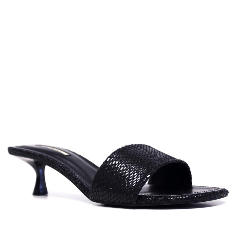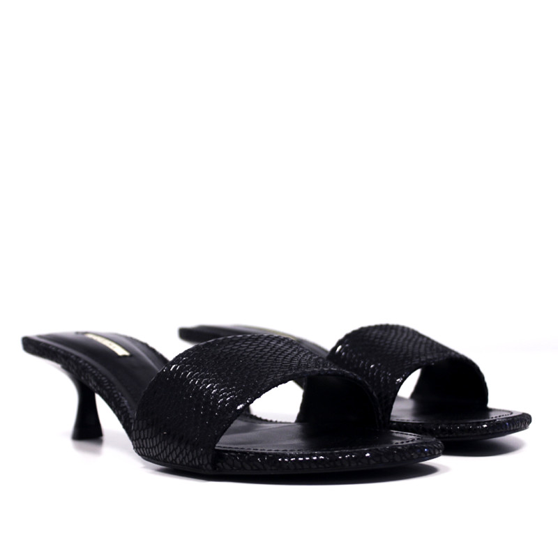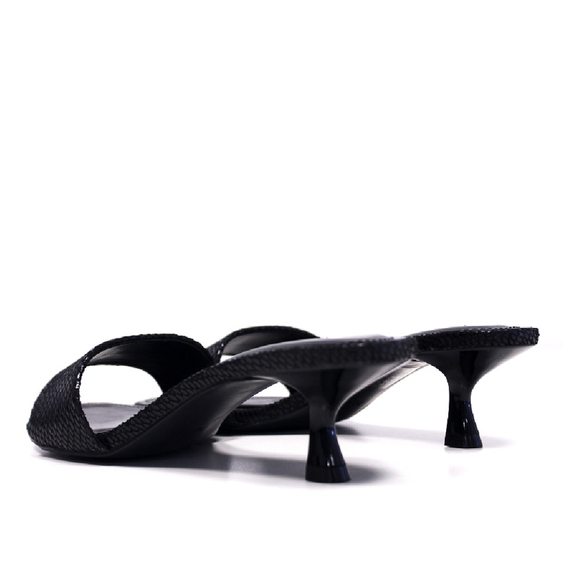 Sandalias tacón Querol negros efecto serpiete y estilo mule