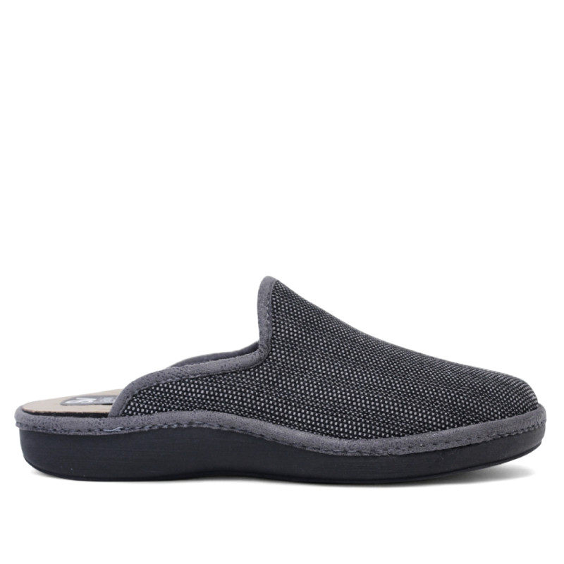Zapatillas de estar por casa para hombre Salvi Draco en color gris. Diseño abierto por detrás que facilita el calce, fabricadas con materiales textiles suaves y confortables. Incorporan plantilla acolchada para una pisada cómoda y suela de goma antideslizante que garantiza estabilidad y seguridad en cada paso. Perfectas para disfrutar del máximo confort en casa.