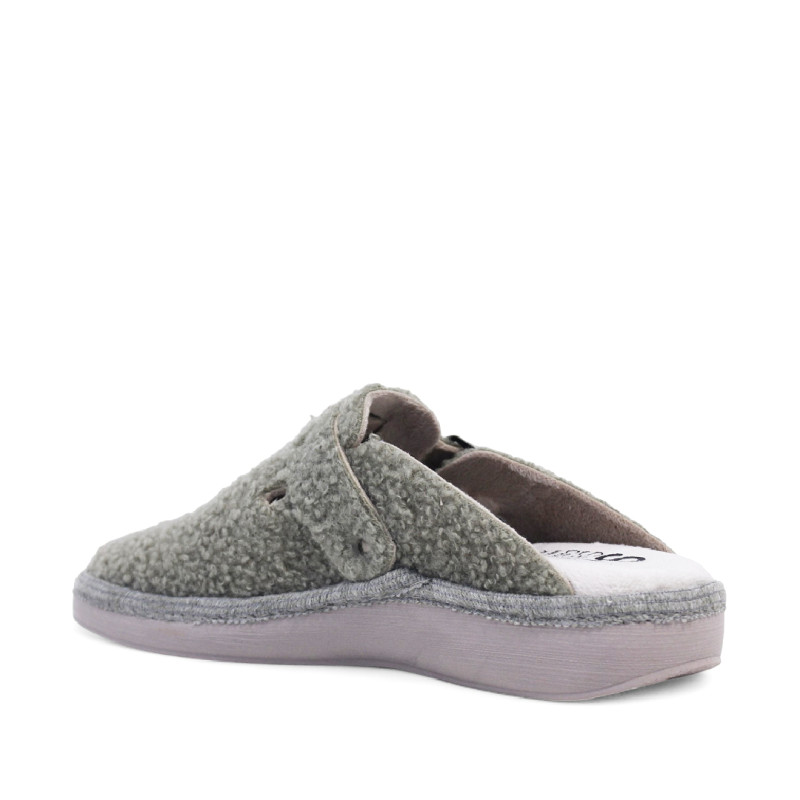 Zueco con hebilla regulable que combina a la perfección comodidad y calidad. Fabricado con suave tejido teddy y forrado con un interior aterciopelado, proporciona una sensación envolvente de calidez y suavidad. Su diseño se adapta cómodamente al pie, ofreciendo un ajuste seguro y confortable. Incorpora una plantilla extraíble con memory foam, lavable y altamente ergonómica, que garantiza una pisada suave y mayor higiene. Ideal para disfrutar del máximo confort en casa durante los meses más fríos.