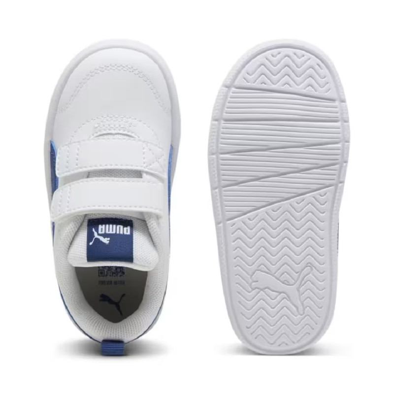 Las zapatillas deportivas para niño Puma modelo Courtflex en color azul y blanco combinan comodidad, estilo y practicidad en un diseño pensado para los más pequeños. Fabricadas en piel vegana, ofrecen durabilidad, resistencia y un acabado ligero para acompañar cada paso. Su cierre con velcro facilita el calce y aporta autonomía a los niños, convirtiéndolas en la opción perfecta para el colegio, los juegos o actividades diarias. Con un diseño versátil y moderno, las Courtflex de Puma son unas sneakers ideales para los pequeños que buscan un calzado deportivo, cómodo y con personalidad.