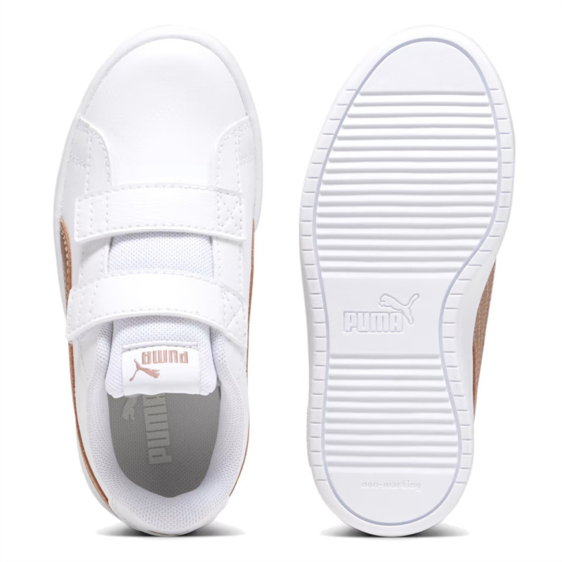 Las zapatillas deportivas para niña Puma Rickie Classic en color blanco con detalles en rosa metalizado destacan por su diseño atemporal y versátil, ideal para el uso diario. Fabricadas en piel vegana, ofrecen un acabado resistente, suave y fácil de mantener. Incorporan doble cierre con velcro, que permite un ajuste rápido, cómodo y seguro, facilitando la autonomía de las más pequeñas. Su estilo limpio y clásico, combinado con el toque brillante del rosa metalizado, las convierte en una opción perfecta para looks casuales, escolares o de ocio. Un modelo cómodo, práctico y con estilo que no puede faltar en el armario infantil.