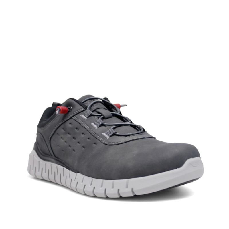 Zapatillas deportivas para hombre de la marca Dockers en color gris, con un diseño moderno y funcional para el día a día. Fabricadas en piel vegana, combinan durabilidad, confort y sostenibilidad, ideales para un estilo de vida activo y urbano. Incorporan cordones elásticos ajustables con detalle en rojo que facilitan un calce rápido y seguro, mientras que la suela con textura garantiza un agarre óptimo en distintas superficies. Este modelo destaca por su versatilidad, pudiéndose combinar fácilmente con looks casuales o deportivos.
