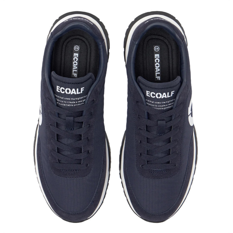 Las zapatillas deportivas Ecoalf modelo Ventura para hombre en color deep navy son un básico imprescindible que combina comodidad, ligereza y sostenibilidad. Están fabricadas con tejido principal 100% poliéster reciclado, ofreciendo un calzado ligero, flexible y respetuoso con el medio ambiente. Su diseño sin componentes metálicos proporciona confort extra y un ajuste natural, ideal para caminar durante todo el día. Con un estilo minimalista y moderno, estas zapatillas son versátiles y se adaptan a looks casuales, urbanos o deportivos. Además, al ser veganas, representan una opción responsable para quienes buscan un calzado ético sin renunciar al estilo. Unas zapatillas cómodas, ligeras y sostenibles, pensadas para hombres que buscan calzado duradero, moderno y respetuoso con el medio ambiente.