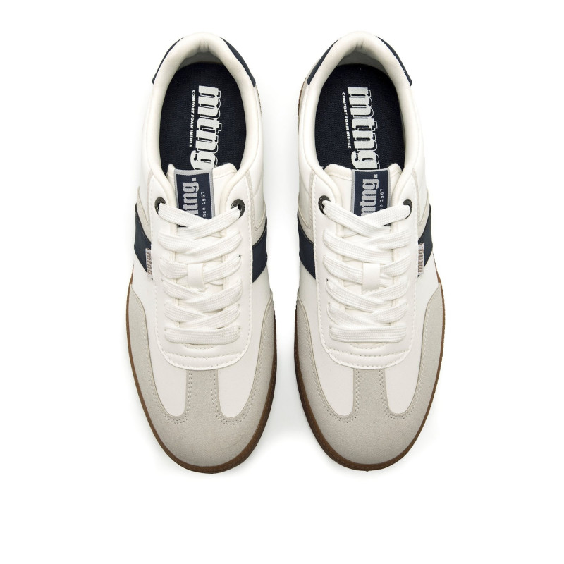Las zapatillas casual para hombre Mustang Goal en color blanco combinan estilo clásico y comodidad para el día a día. Este modelo presenta detalles en azul marino y gris que aportan contraste y un aire deportivo. Su diseño versátil las convierte en una opción ideal para completar looks urbanos o informales. La suela de goma en tono caramelo ofrece un agarre excelente y gran resistencia al uso, garantizando confort y durabilidad. Además, cuentan con el certificado VEGANO sellado por INESCOP, que garantiza que los materiales utilizados no contienen fibras de origen animal.