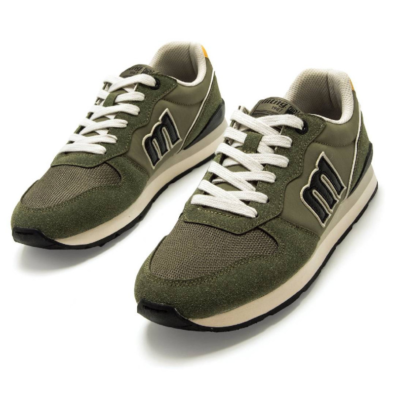 Zapatillas deportivas Mustang joggo classic verde kaki con panel trasero amarillo