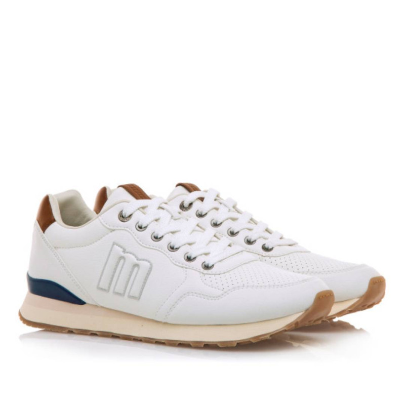 Zapatillas deportivas Mustang porland classic blancas con borde superior marrón