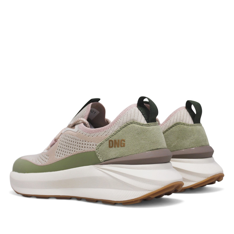 Las zapatillas urban D'Angela para mujer combinan comodidad, estilo moderno y un toque urbano en un diseño versátil. Este modelo en color rosado incorpora detalles en verde kaki, con paneles en piel vegana y un panel trasero de antelina verde kaki, que aportan contraste y sofisticación al calzado. Su estilo tipo calcetín asegura un ajuste cómodo y flexible, mientras que la suela gorda en blanco proporciona estabilidad, amortiguación y un look urbano muy actual. Ideales para quienes buscan zapatillas casual con personalidad, cómodas y sostenibles, perfectas para el día a día y combinaciones informales.